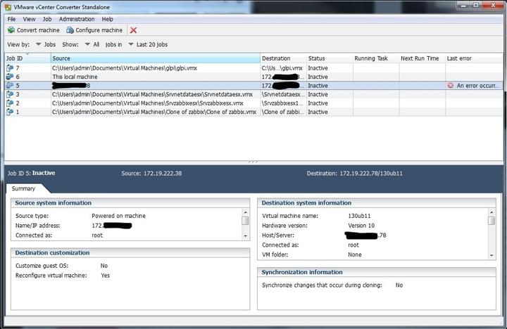 -Dans un second temps, j'ai converti l'image de mon poste windows vers l'ESX (physique à serveur)